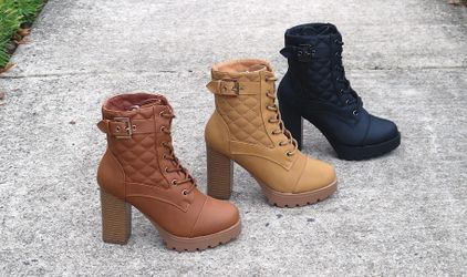 Shoe Fash Women's Chunky Heel Ankle Platform Lug Sole Lace Up Booties$30Mount Laurel Township, NJ