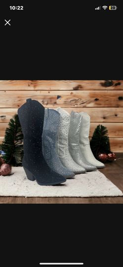 Shoe Fash Women's Rhinestone Boots Western Mid Calf Pointed Toe Chunky Stacked Heel Fashion Cow Girl Boots For Women$29Mount Laurel Township, NJ