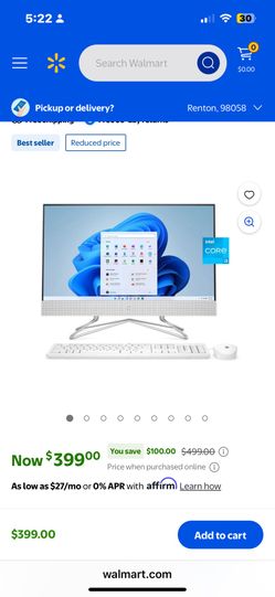 Hp All In One Desktop W/24 Monitor Intel Core I3 111G4 4G 256Gb$250Kent, WA