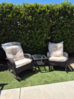 3 Pieces Wicker Conversation Rocking Chairs Patio Color: Dark Brown $240Fontana, CA