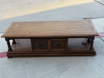 Solid Wood Traditional Coffee Table with Drawers – One Leg Damaged (As-Is)$50Round Rock, TX