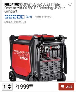 PREDATOR 9500 Watt SUPER QUIET Inverter Generator with CO SECURE Technology Low Hours 2 Available $1,800Modesto, CA