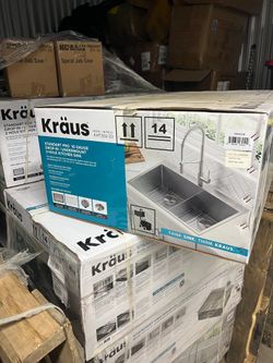 KRAUS 33 x 22 inch Standart PRO Drop-In/Undermount 16 Gauge Double Bowl 2-Hole Stainless Steel Kitchen Sink$350Modesto, CA