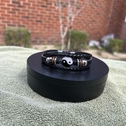 Yin-Yang Charm Black Three-strand Braided Leather Bracelet Mens Womens BT4$18Augusta, GA