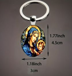 Stained Glass Virgin Mary holding Baby Jesus keychain/necklace combination $14Menifee, CA