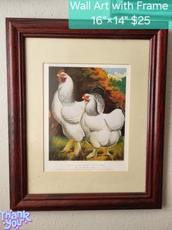 Picture Painting Wall Decor With Frame Chicken Rooster Cute Cute$10San Antonio, TX