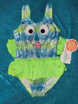 NWT Size 4T CANDLESTICKS | Baby Girls' Blue Foil Kissy Fish One Piece Swimsuit $20Riverside, CA