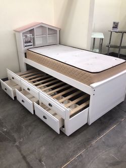 Twin Trundled Bed Frame Solid Wood New In The Box $299Long Beach, CA