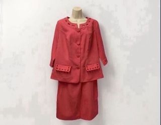 ✨New✨ Adult Women Size 14 W 2-piece Pink Coral Suit Skirt Blazer Jacket Button Up 3-4 Sleeve Elastic Waist Knee Length$16Long Beach, CA