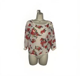 Medium Blouse White Sheer Floral Scoop Neck 3/4 Sleeve$8Long Beach, CA