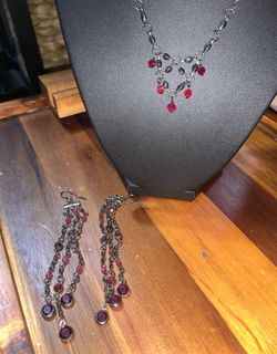 Red Black Bead Clamp Necklace Hook Dangle Earrings Matching Set 8 In$10Long Beach, CA