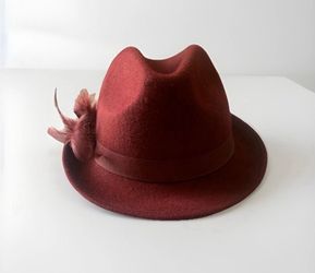 Red Wine Burgundy Felt Fedora Feather Band One Size Os$11Long Beach, CA