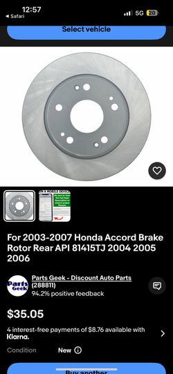 Honda Accord Brake & Rotor Rear $35Haverhill, MA