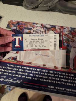 Ivan (Pudge) Rodriguez HOF Celebration At Texas Rangers Ticket Stub And Certificicate$65Fort Worth, TX