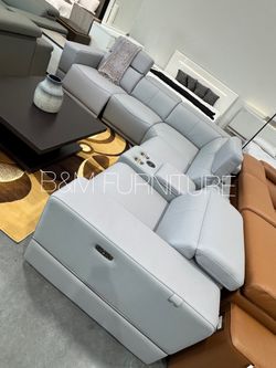 Real ITALIAN 🇮🇹 LEATHER ( 6pcs Power Reclining Sectional with 2 and 3 Power headrests and Wireless Charger$2,900Houston, TX