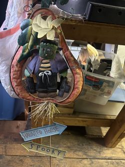 Snow Man Figurine , Santa Hanging Sign And Stocking $8Bedford Park, IL