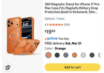 iPhone 17 Pro Max 6.9"(Matte Orange) Case 360 Magnetic Stand$12Covina, CA