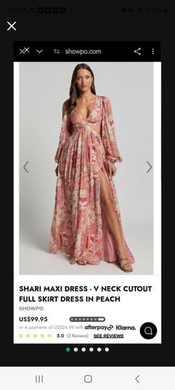 Showpo Floral Dress (Shari Midi Dress-V Neck Cutout Full Skirt With Slit Dress)Peach*NWT* Size 14. ONLY$45 OR BEST OFFER $45Long Beach, CA