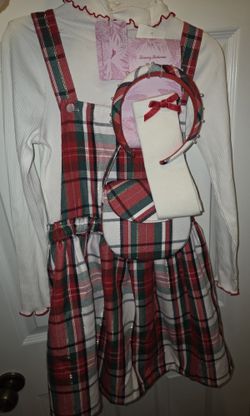 Tommy Bahama Girls 8 Red Green Plaid Pinafore Dress Pleated Festive Style - 5 piece NEW$40La Costa, CA