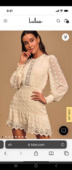 Lulus Lust or Love Cream Embroidered Lace Long Sleeve Dress Women's Size LARGE$30La Costa, CA