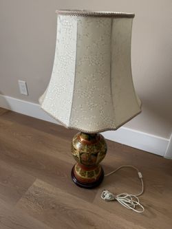 Vtg Chinese Chinoiserie Floor Vase 33” Mountain Scene Floral People W/Stand Rare$119Pompano Beach, FL