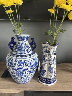 Vintage Chinese Blue & White Porcelain Vase w/ Handles Set Of 2 $29Deerfield Beach, FL