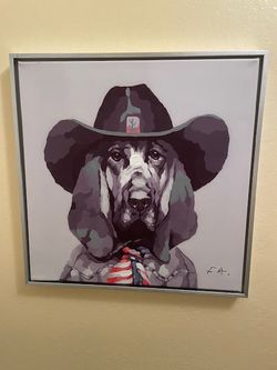 Cowboy Hound Dog Wall Painting Oil On Canvas 18”x18” Aluminum Frame$15Antioch, CA