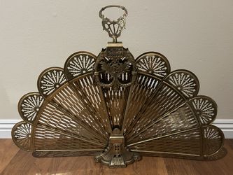 VTG MCM Victorian Deco Brass Fireplace Fan Peacock w/Cameo Folding Screen$530Irvine, CA