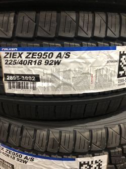 Brand New Tires (1) Falken Ziex ZE950 A/S (225/40R18XL) (Single) ($115)$115Riverside, CA