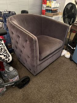 “Boulevard “ Grey Velvet Tufted Studded Swivel Barrel Accent Chair$100Fontana, CA