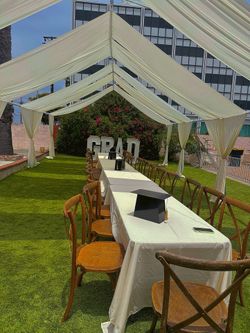Draped Canopy , Cross back Wooden Chairs $1Los Angeles, CA