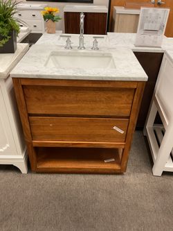 30” Brown Solid Wood Bathroom Vanity With Marble Top (V1257)$450Jurupa Valley, CA
