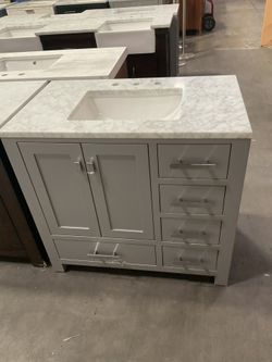 36” Brown Solid Wood Bathroom Vanity With Marble Top (V1270)$600Jurupa Valley, CA