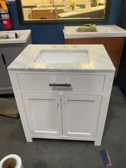 30” White Solid Wood Bathroom Vanity With Marble Top (V1248)$450Jurupa Valley, CA