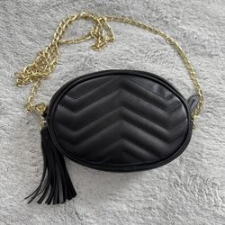 Black Zig Zag Faux Leather Small Crossbody Belt Bag with Gold Chain. Unbranded. $20Stockton, CA