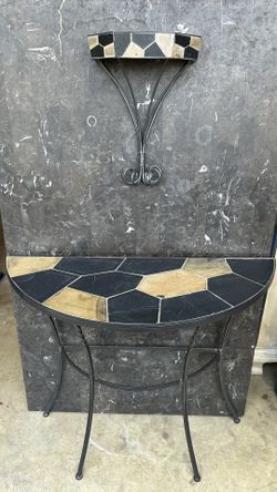 Elegant Entryway Table with Matching Tall Wall Accent Shelf – Beautiful Stone Tile Top Set$125Fort Worth, TX