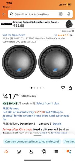 alpine S 2x12 subwoofers$280Mount Vernon, WA