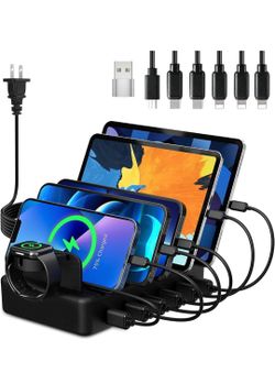 Charging Station for Multiple Devices, CREATIVE DESIGN 50W 6 Ports USB Charger Station with Apple Watch Holder & 6 Cables, Charging Dock for iPad Cell$25Cary, NC