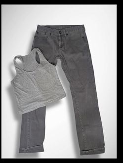 Outfit :Bullhead Jeans Size 28 X 30 . size small grey crop top tank$10Norco, CA
