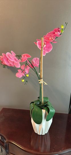 Orchids Home Decor Artificial Orchids Pink Phalaenopsis With White Ceramic Vase . Vase is 8” tall.$45Boca Raton, FL
