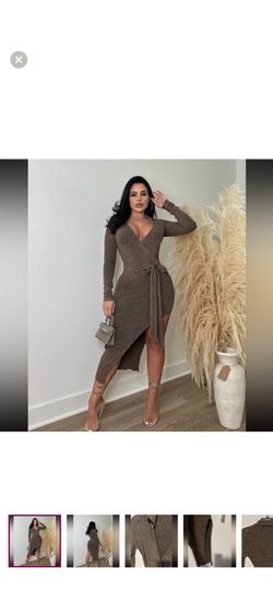 Magnolia Women Long Sleeve Collar Stretch Midi Dress Side Slit Brown Size Large$25Port St. Lucie, FL
