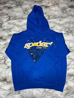 Sp5der Web Hoodie Blue Yellow Rhinestone Logo Size L Large Pullover $80Joliet, IL