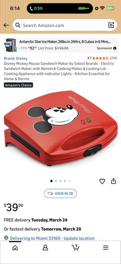 Disney Mickey Mouse Sandwich Maker by Select Brands - Electric Sandwich Maker with Nonstick Cooking Plates & Locking Lid - Cooking Appliance with Indi$30Miramar, FL