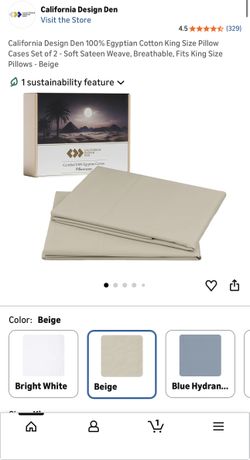 California Design Den 100% Egyptian Cotton King Size Pillow Cases Set of 2 - Soft Sateen Weave, Breathable, Fits King Size Pillows - Beige$15Miramar, FL