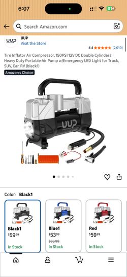 Tire Inflator Air Compressor, 150PSI 12V DC Double Cylinders Heavy Duty Portable Air Pump w/Emergency LED Light for Truck, SUV, Car, RV$45Miramar, FL
