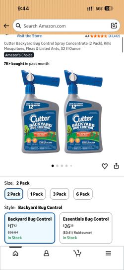 Cutter Backyard Bug Control Spray Concentrate (2 Pack), Kills Mosquitoes, Fleas & Listed Ants, 32 fl Ounce$10Miramar, FL