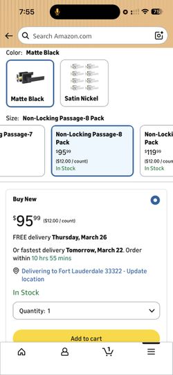 KAMOTA Passage Door Levers, 8 Pack Black Heavy-Duty Keyless Door Handles, Square Non-Locking Door Knobs, Right and Left Handed for Closets, Hallways a$70Miramar, FL