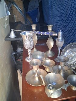 Assorted Brass Pewter And Silver Candle Holders And Ash Trays $50Callender, California
