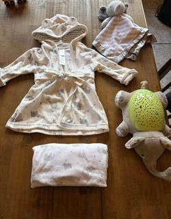 Elephant Grey Elephant Soother Light/music, Safari Robe, Cloth, Receiving Blanket $20Pumpkin Center, CA