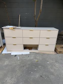 Light Beige 9-Drawer Fluted Dresser w/ Gold Handles 62.9in missing a piece to complete drawer selling as is$60Ontario, CA